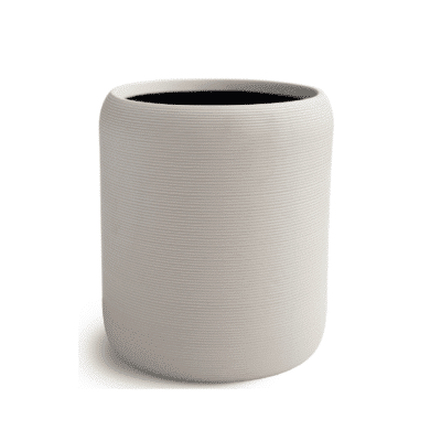 Crafted from porcelain, the Fillmore Bath Accessories feature a ribbed texture. Ivory on the outside and black on the inside, these accessories achieve the ultimate modern look