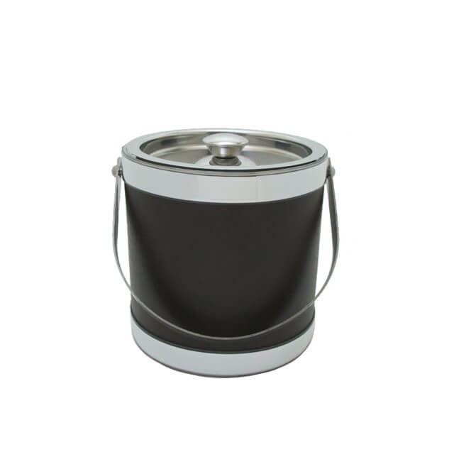 Brown Stainless Steel 3 Quart Leatherette Ice Bucket