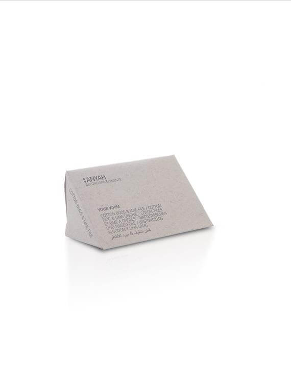cotton buds & nail file in prisma box ASPECT Anyah helps you taking care of the environment. The packaging is made of recycled paper (85%) and paper pulp (15%), printed using a soy-based ink. CONTENTS 3 cotton fioc 1 nail file 5 cm long CLOSE BOX DIMENSION 5,3 x 3,7 x 8 cm PRODUCED IN CHINA