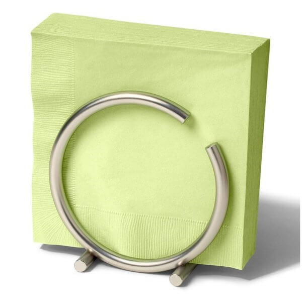 This napkin holder keeps your napkins off the table and easily accessible. Made of sturdy steel, its clean design will add a modern touch