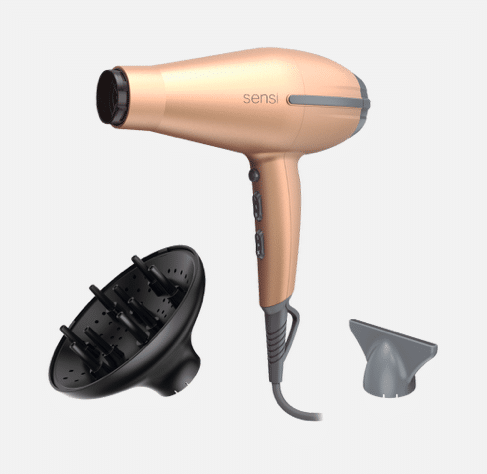 An elegant hairdryer with professional performance and ceramic coatings for a gentle effect on hair, leaving it shiny, rejuvenated, and frizz-free. Comes with a handy nozzle and diffuser case.